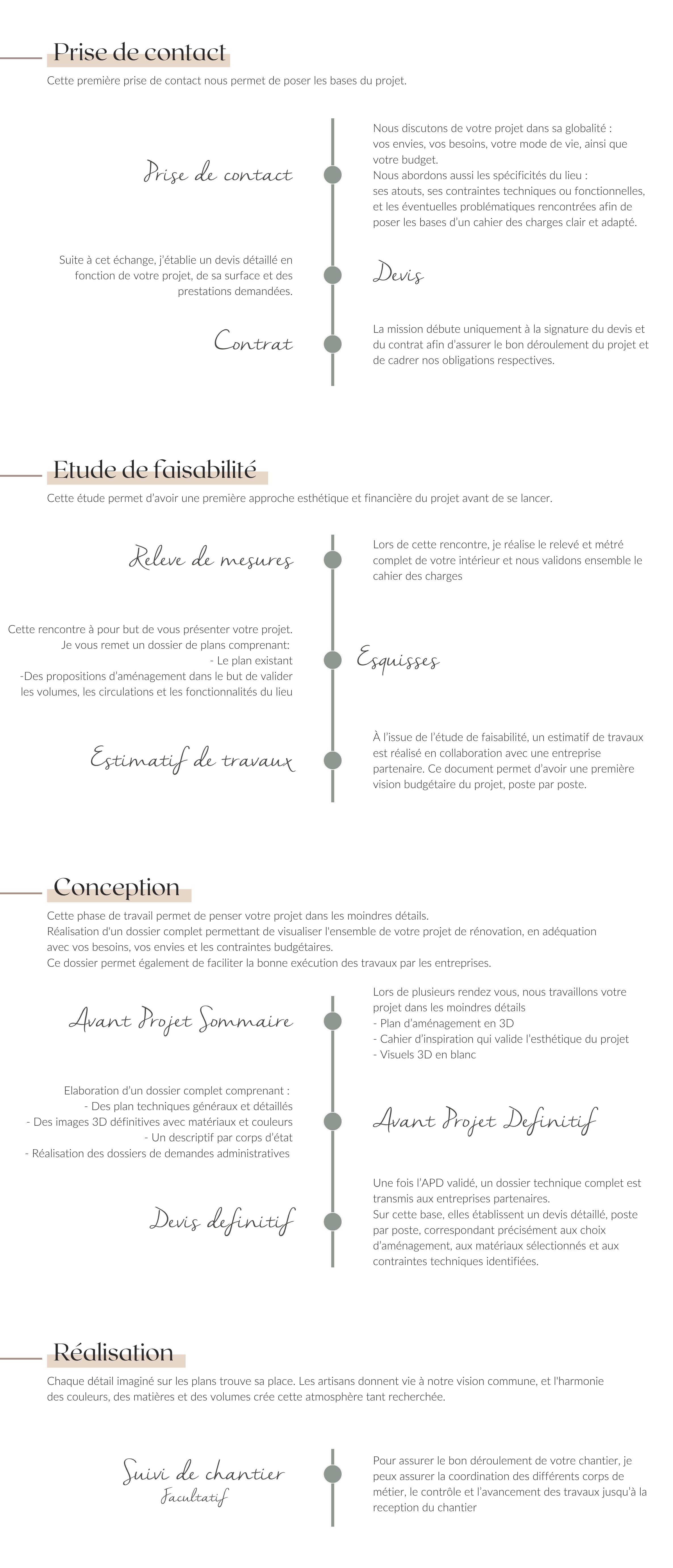 Je vous accompagne à chaque étape pour garantir la réussite de votre projet, je vous guiderais jusqu’à l ‘aboutissement de votre projet, dans vos choix d’agencement et de décoration.